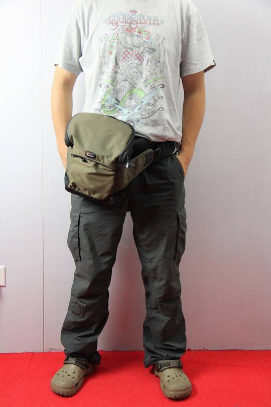 乐摄宝FS-DO的面料采用了非常轻的防雨面料,而且非常的牢固。整体采用了梯形和腰带的宽变窄的设计,给用户了一个非常的舒适感。 带后衬垫的网面腰带可以提供长时间的背负舒适感,松紧带扣可以自由调节让腰包分配负重。无论是使用在前面或是后面,都依旧没有累赘感。