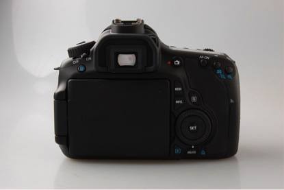 由于液晶屏的更改使得这款相机在机背按键部分有着明显的改变,粗看之下其按键部分有几分类似于550D。左上侧设置了开关以及删除按钮。开关被移至左上 侧,和7D相同。显然这个设计将会在中端相机上继续沿用。菜单键、回放键都被集中在右边,所以在操作菜单时,基本上可以只用需要右手就足够了。