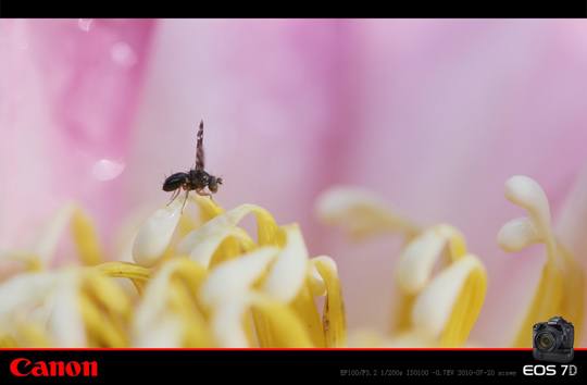 编者按:09年发布的佳能EOS 实现了在约1800万有效像素的高画质下,高达约8张/秒的连拍速度。并搭载了高速智能的自动对焦系统等众多新功能。今天我们来欣赏一下论坛泡菜“xcnwy”使用配合EF 100/2.8L IS USM镜头拍摄的一组微距作品。