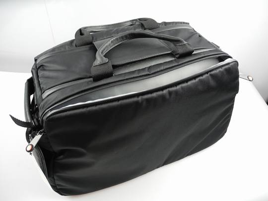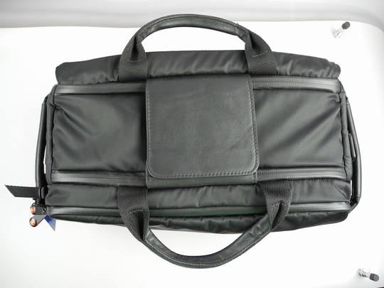 看完了包的两侧,现在我们进入重点的中间部分。开篇我们说到这款包是集合了时尚和专业。看到了两侧时尚感后,我们要见识一下MB LM050-7BB的专业一面,这款包的最大设计感就是在顶部的设计,不但采用了超大的粘合盖,还采用了,双防水涂层拉链的设计,张添了时尚的元素在内,同时,能更好的起到防水作用。
