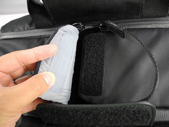 接下来,我们再看一下 MB LM050-7BB的另一面,考虑到用户的使用,曼富图并没有在这边设置过多的元素,只有一个可装入电脑的侧包,同样采用了特别打造的防水涂层拉链,在用户正常的使用情况下,可以方便快捷的取出电脑随时使用,同时隔层为您携带的笔记本提供充分保护。