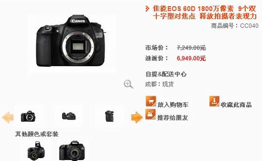 其实,这是最关键的问题。从迪派商城上获悉的60D的单机价格在6949元。属于高端入门级偏上的价位。与之前公布的10452元的售价差异颇大。但这个价格却非常收欢迎。