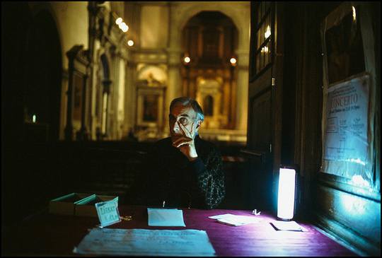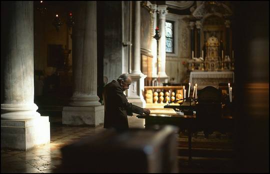 威尼斯,意大利,教堂里正在向募捐箱投币的老人