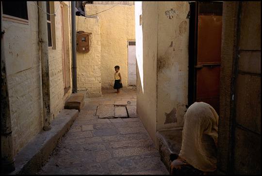 杰斯米尔,印度,巷子里的小孩和她的奶奶
