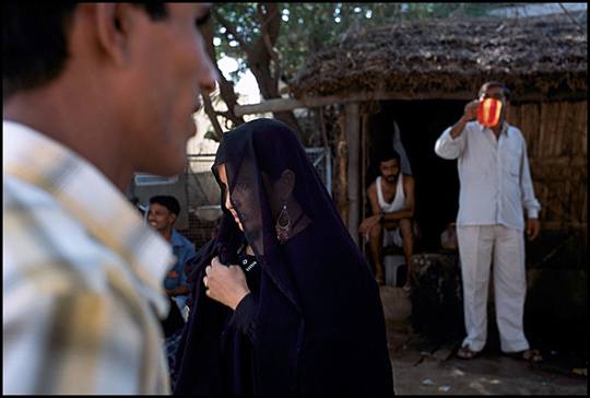 拉贾斯坦邦,印度,西北部沙漠边一个不知名的小村落,穿黑色纱丽的女人