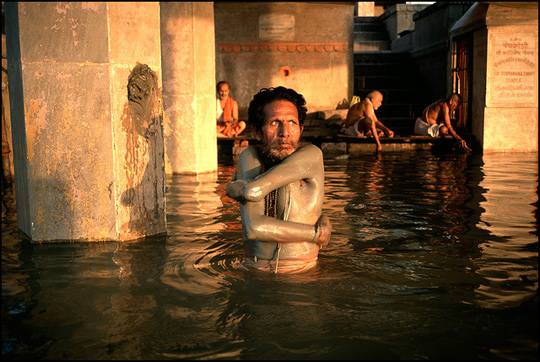 瓦伦纳西,印度,清晨,恒河边的沐浴者