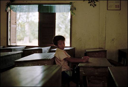 吴哥,柬埔寨,乡间小学里的小男孩
