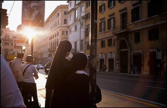 罗马,意大利,正在等公车的修女