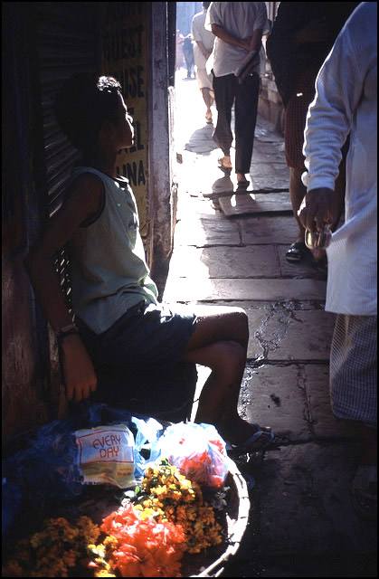 瓦伦纳西,印度,路边卖花的小男孩