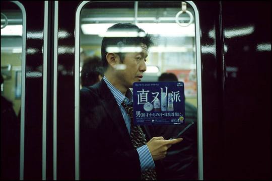 大阪,日本,地铁里正在发短信的男子