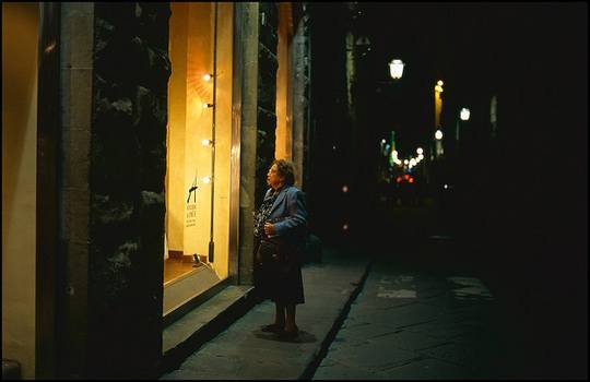佛罗伦萨,意大利,橱窗前的老妇人