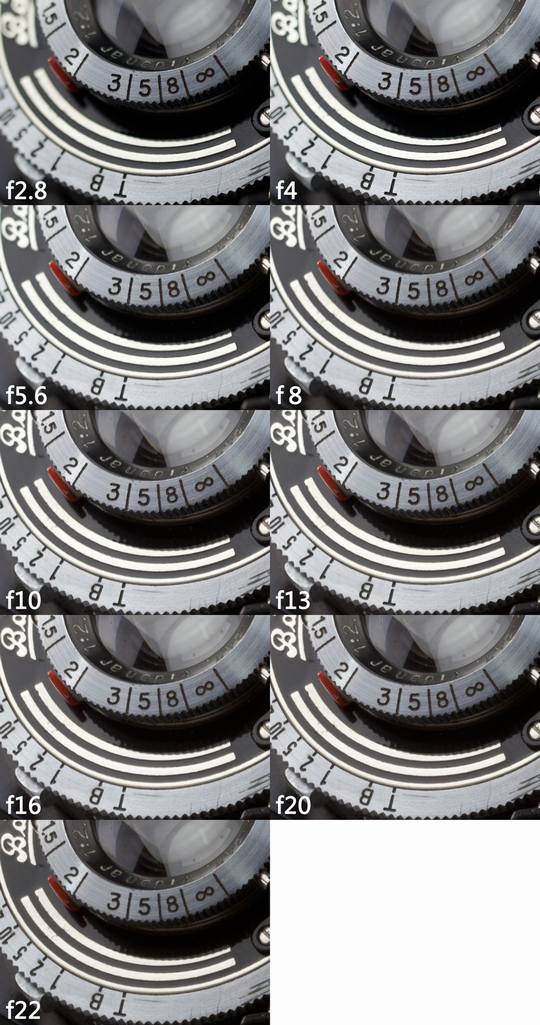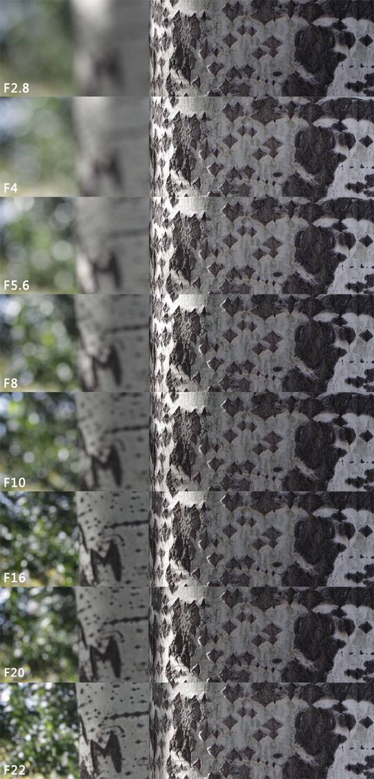 逆光拍摄的时候,对焦情况比较理想,也是基于被摄物体的反差面较大。这只镜头的光圈范围是f/2.8到f/22,我们来看一下各档光圈下的焦外情况如何。