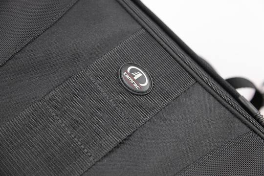 天域5592的正面前端是放置三脚架的地方,采用了伸缩扣的两条带子,搭配下方的脚兜,即使携带有点分量的脚架,相信也不在话下。