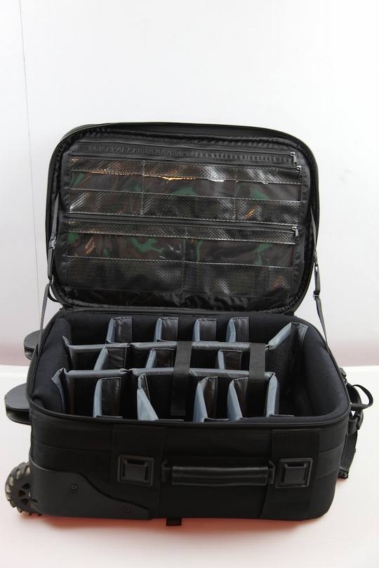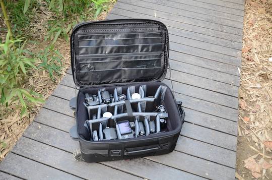 天域5592的内部构造和外部一样拥有着简易的设计,顶部盖上设计有装电池,充电器,已经SD卡等小部件的透明拉链袋,方便使用者一目了然的随意拿取,在主箱内,天域5592也采用了可调节的隔层,极大的方便了摄影爱好者的需求,单反,镜头,长焦等随意摆放。