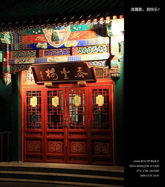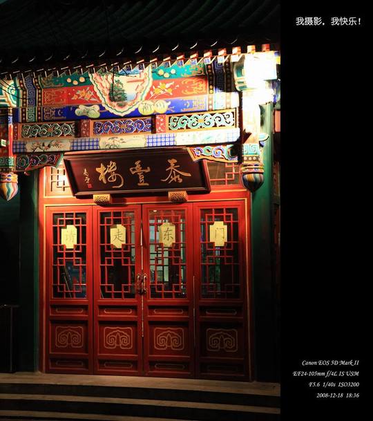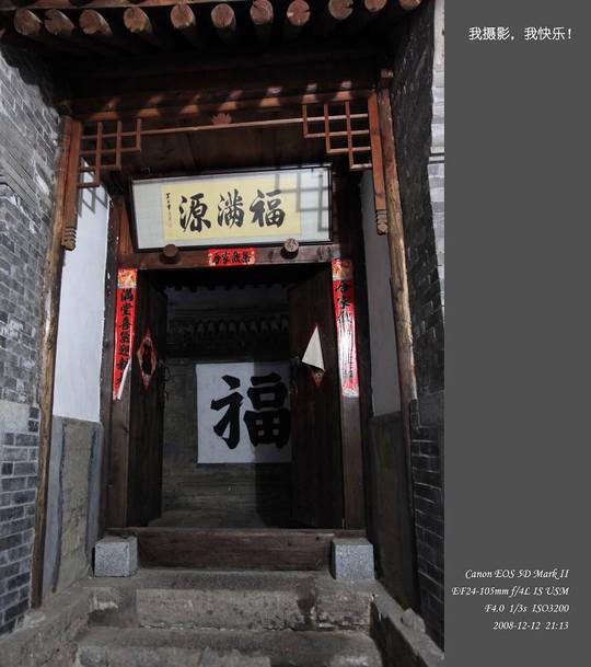 5D2套头、光圈f4、速度0.3秒、ISO3200、标准降噪、相机直出JPG,精细JPG画质、自动白平衡、手持拍摄。