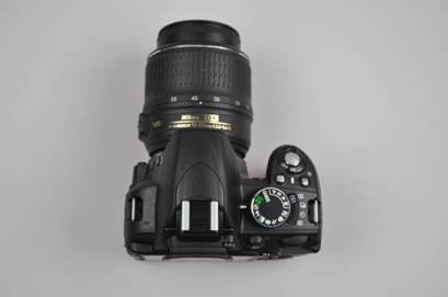 和D90相比机身顶部的变化最大,右边的功能按钮减少到两个:测光模式和曝光补偿,连拍模式按钮被整合到顶部左方的双层转盘下层,AF模式按钮被挪到镜头旁边的AF模式拨杆(后面介绍)。这种风格更加接近专业相机的设计。