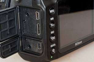 和一样电池换成EN-EL14,与历史悠久的EN-EL3系列电池不兼容,这也许是出于减少机身体积的考虑。机身侧面有四个外接端口:Mini-HDMI高清视频接口、Mic(麦克风)接口、USB-A/V接口、GPS接口。SD存储卡插口还在机身手柄处,方便更换。后背液晶显示屏不仅尺寸增加了,而且像素也从23万像素升级到92万,显示效果有明显的进步。整体机身操作还是非常舒服,包括手柄尺寸和形状,只是一些按钮的安排还有改进空间。