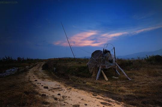 看护庄稼的草棚,肃穆地静候东方天空第一抹曦晖