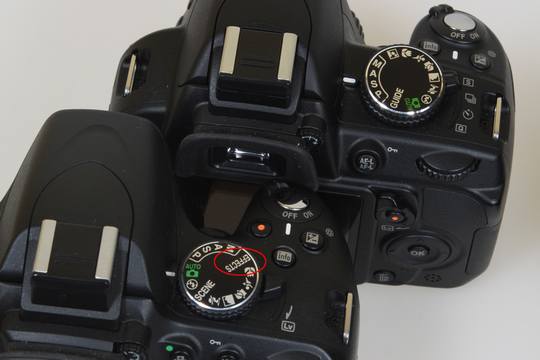 另外一个有趣的地方在LV(实时取景Live View)与录制短片按键设计上,2010年推出的D3100与D7000采用LV模式拨杆与录制视频按钮组合设计,而D5100将这两者分开设计,模式转盘和即时取景开关位于同轴位置,拨杆设计,这个拨杆在D3100上是驱动模式选择器(单张、连拍、自拍等)。小编觉得D5100这种分开设计并不好,要进行录像就要先进入到LV模式下(反光板抬起,LCD取景),是LCD取景拍照还是录像就是下一步,是否按红色录制按键,所以两者是有一定关联的,设计在一起更为合理。当然如果能设计成按下红色录制按钮,反光板升起进入LV模式开始录像,一次完成倒也可以。
