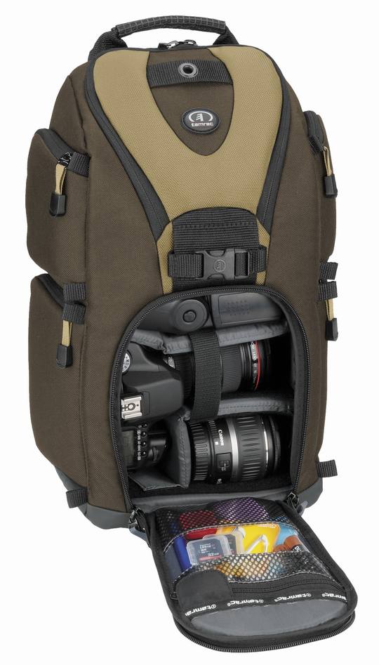 单从外形结构来讲,这款产品秉承了传统的双肩式摄影包的设计理念,顶部杂物仓和底部的相机仓有序的分开。与去年款式上差异并不大。