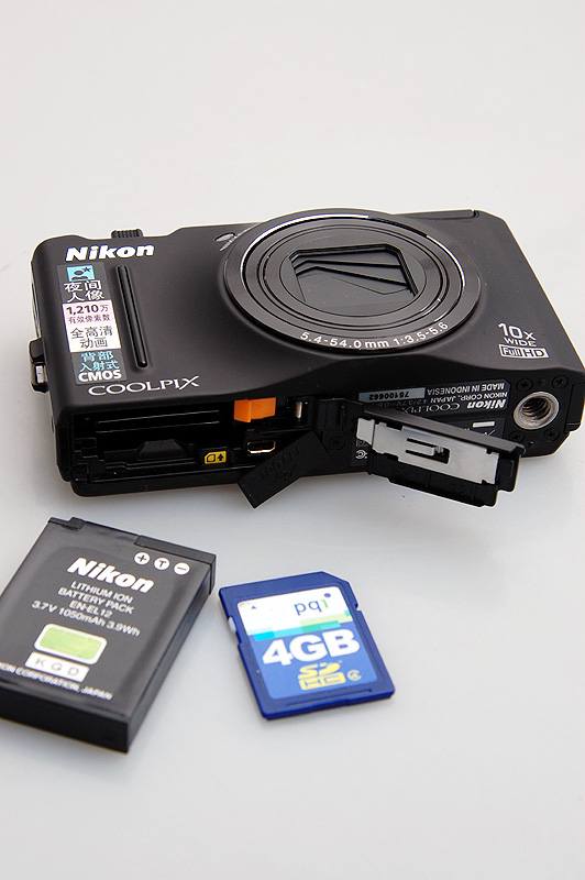 COOLPIX S8100没有随机附送座式充电器,电池充电需要通过数据线连接电脑或电源适配器与相机直接连接完成。使用1050毫安的电池,测评期间这枚电池的续航能力表现不错,连续使用一天,能够拍摄约250张照片左右,电池仍有小许电量。存储媒介是使用的是目前通用性最高的SDHC存储卡。