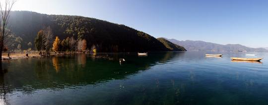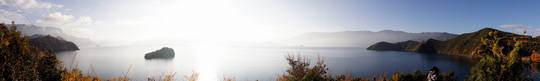 湖景,山景,用全景扫描全部记录了下来,无需三脚架,手持可以完美完成这项功能。