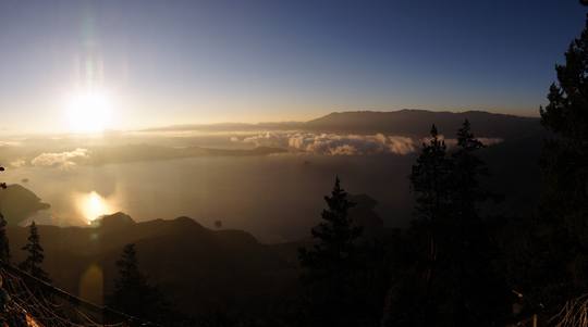 旅程的第三天,大家起了个大早,天还没亮就冒着严寒,赶往泸沽湖景区最高的一座山峰-狮子山,去拍摄和观赏壮美的日出美景。