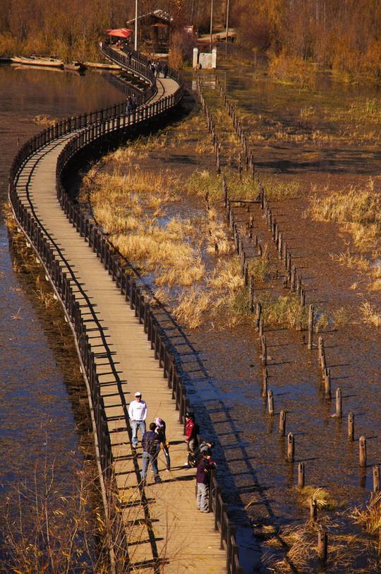 下午的行程,我们来到泸沽湖著名的草海,横跨草海有一座著名的走婚桥(情人桥)她连接着两个对岸,摩梭的男子和女子由桥的连接走到一起便成为一生的娟侣。桥的历史很古老,有一座已经老的废弃了,想必已经见证了无数的爱情喜悦而幸福的退休。在她旁边有一座是新建的,承接了美丽的使命。