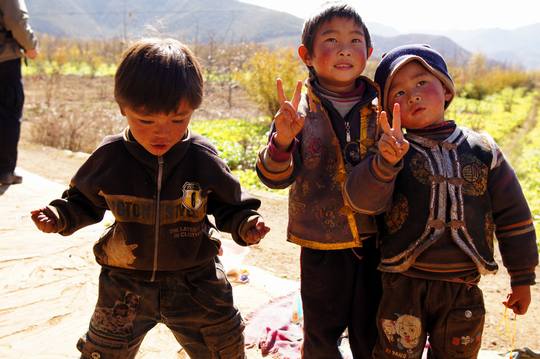 当地可爱的小男孩摆出各种pose让我们拍摄。