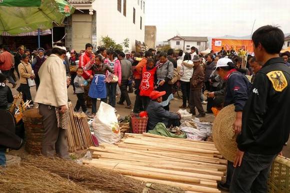 现在的棒棒会比起以往更加丰富起来,有了花草树桩,还有人们自制的小弓箭,竹制的剑,新捆成的竹扫帚,篾签编的筐,背箩和簸箕。当然,最多的还是传统的斧头把,锤子把,锄头棒,拖把棍,吹火筒和各式的竹刷子,马笼头,鸡笼,犁,桶,耙。淳朴的纳西族人们还在这天买卖棺材板,似乎这个神奇的民族并不避讳提及死亡,让人们不得不佩服他们。
