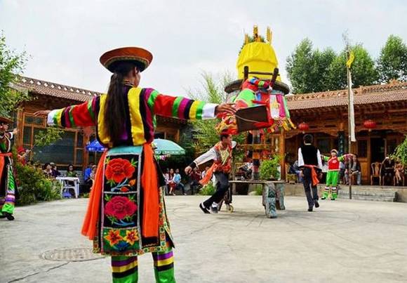 人们称土乡是“彩虹的故乡”,是因为土族服饰的绚丽多彩,鲜艳夺目。特别是青年妇女的“花袖袖”犹如剪来彩虹作成的。