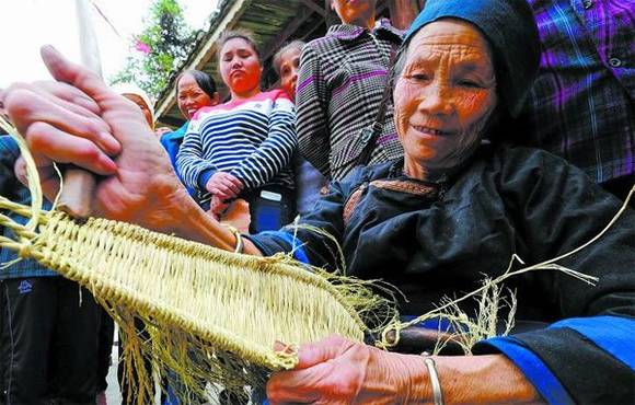 苗族姑娘赠给情人的一种信物。通常草鞋只有四练,送给情人的第一双草鞋要有六练。相传很久以前,有位苗女送给情人一双四练草鞋,不久发现那草鞋仍在她家屋边,情人离她而去。苗女很伤心。后来她与另一青年定情,送他一双精心编制的六练草鞋,结婚后,恩恩爱爱,白头偕老。六练草鞋是在4根经练的基础上加两根经练,都用棕丝搓就,鞋板用禾秆编织,股股均匀细密,还可以编出花色,鞋耳用青麻做成,穿在脚上既软和又好看。