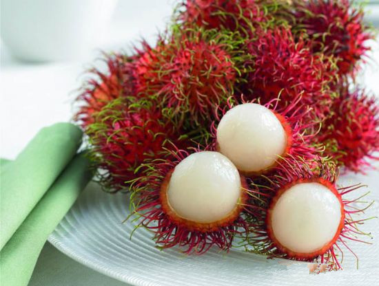 红毛丹人称水果公主,外观美,营养丰富,味甜至酸甜,带荔枝或葡萄风味,可口怡人,长期食用可润肤养颜、清热解毒、增强人体免疫力。它含有丰富之钙质,磷质与维他命C。其性微寒,味辛、无毒,入心、肝、肾三经,有散阏血、清血、和血、清热、止痛、通经之功能。还有降血压、抗菌消炎之作用.久食可令肌肤细嫩,容颜红润精神饱满,焕发青春活力。