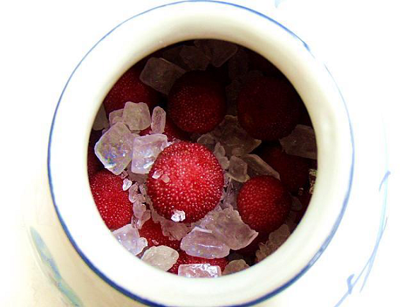 原料:杨梅、白酒、冰糖。