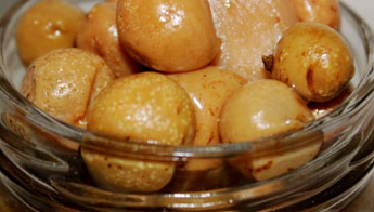 3、接下来将黄皮果里面的核去除,可以用家庭常用的那种匙更轻压一下黄皮就可以将核拿出来,再将黄皮放瓶;