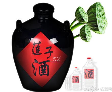 莲子浸泡白酒,毎斤莲子加白酒8一10斤,浸泡15天左右,取出酒液再浸泡一次,两次酒液混加一些糖调口感。
