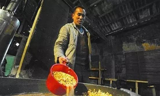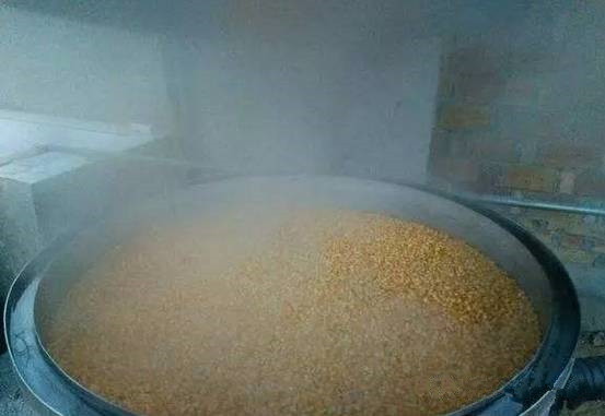 2.熟料液态发酵:把玉米煮熟,加水、加曲发酵。