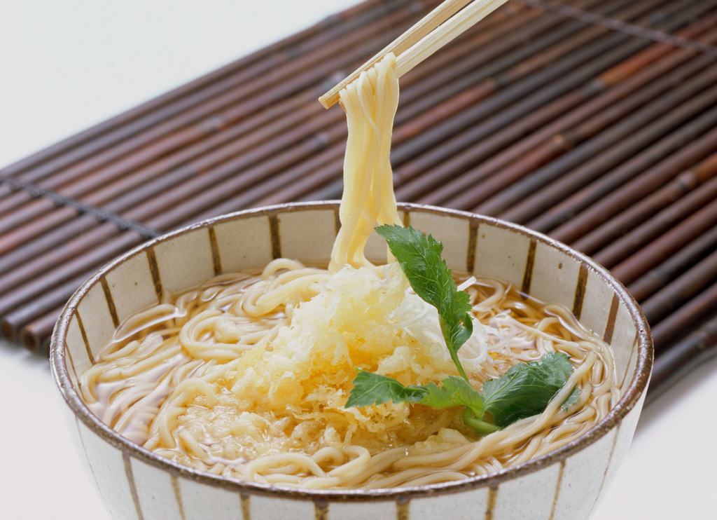 Buckwheat noodles are made through pressing the buckwheat flour through the special device with holes. They can be served either hot or cold. If It Is served cold, flavor It with salt, vinegar, mustard, garlic sauce and hot chili. If It Is served hot, warm It up In the hot soup and scoop It up and top It with stir-fried vegetables and meat. Buckwheat noodles taste a little bitter but delicious and they are beneficial al the year round for It’s antipyretic nature.
