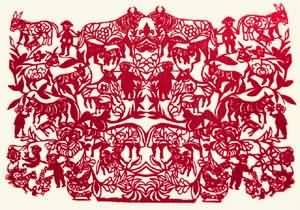 切り紙細工は一種類の悠夊な歴史があっていて民間の芸術の形式として,中華各民族人民にすきです そのなかに陜は北の切り紙細工がいまだに注目を浴びります。 陜の北の切り紙細工は秦、漢民の風含んだ,風格は細くてきわ立って美しくて粗野で大様で 太い中ことは見るのは巧み,労働者,土の中でびかんを見て,かつてつづけて数年別別に西安、北京などの各地で展覧した 好評を得ます。 近年,陜の北の切り紙細工の芸人は何度も外国へ訪問に行って技芸を披露して,沸き立たせることを引きおこします。