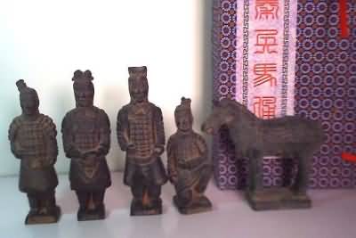 歴史的な文化背景は簡単な紹介の秦始皇兵馬俑が1974年見つけるので 秦兵馬の形をした殉葬用のはにわは巨大な規模で,勇壯な場面,およびずばぬけた科学、芸術レベル 観衆たちをきょうたんするてやまなささせるです。 この兵馬の形をした殉葬用のはにわの芸術歴史にとても高い価値があります。 兵馬の形をした殉葬用のはにわの形作り,リアルライフで基礎のために創作して,芸術手法はきめが細かくて明快です。 陶はにわの装束、様子全部同じではなかったのです。 光はかみの型がたくさん種類があって,手まねもそれぞれちがって,顔の表情はもっと様子が違いです。 それらの装束、表情と手まねから出すのが役人ですかそれとも兵士,歩兵ですかそれとも騎兵ですと判断することができます。 ここは長いひげがあるのことは砂漠の老兵経てひさしい,初めて戦場に行く青年もあるです。 陶俑は明かるい個性の強烈な時代特徽があります。 この兵馬はたたえるのはちょうその芸術の宝庫で,中華民族の輝かしい古い文化のために肩身がひろく増加して,また世界に芸術歴史をやって輝かしい一つのペ-ジを補充しました。 注釈する この品物の古代になぞらえるために陶器製品,5個は一セットで,うちはあって人物を説明します。