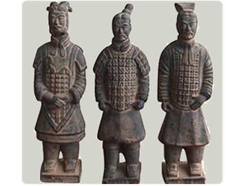 진용은 진시황병마용을 본따 만든 도기 인형이다. 진시황 병마용 박물관 앞에서 구입할 수 있으나 정교하게 만들어지지 않아 쉽게 부서지는 단점이 있다.