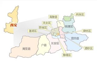 염량구: 면적은 240㎢, 인구는 25만명이다. 시내 동북쪽에 자리 잡고 있으며 시 중심으로 부터 60km이며 "여염랸선" 이라는 성어로 부터 그 이름을 얻었다. 아시아에서 가장 큰 항공성이며 지역내에는 서안 염량 국가 항공 하이테크 산업 기지가 있다.