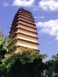 Пагода Малого Гуся (Xiao Yan Ta) расположена на территории храма Цзяньфу (Jianfu). Высота сооружения – 43 метра, верхушка пагоды сорвалась во время землетрясения XVI века. Сам храм Цзяньфу был выстроен в 684 году н.э. во имя благополучного посмертия императора Гао Цзуна. Таким образом, храм и пагода родственно связаны с Большим Гусем. Малый Гусь также хранил буддистские рукописи, привезенные, правда, другим путешественником. |