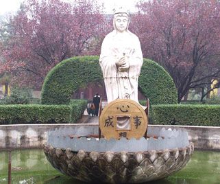 он находится под горой Ван Шунь в селе Пу Хуа , который на расстоянии 10 километров от уезда Лань Тянь. Храм имеет длинную историю, и он является важным государственным охранительным учреждением. Этот храм известен редкими искусными цветными скульптурами, которые сохранились до сих пор. Люди называют этот храм 《вторым Дуньхуаном》. |