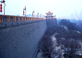 Одной из достопримечательностей города является городская стена – Стена эпохи Мин. Со стены открывается живописная панорама старого города с видом на колокольню и Барабанную башню. Построенный в течение Династии Танг, когда город был столицей, стена - единственная уцелевшая городская стена, существующая в Китае. Прямоугольная стена 11.9 километров длиной, 12 метров высотой, 12-14 метров шириной на вершине, и 15-18 метров шириной в основе. Существует 5 894 амбразуры только по внешней стене. По углам стены 4 сторожевые башни. Каждая из 4 сторон имеет ворота. На вершине ворот - главные башни и пожарные вышки. Ров защищает периметр. |