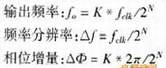 显然,只要改变分频比N,即可实现输出不同频率的fo,从而实现由fr合成fo的目的。其输出频率点间隔Δf=fr。