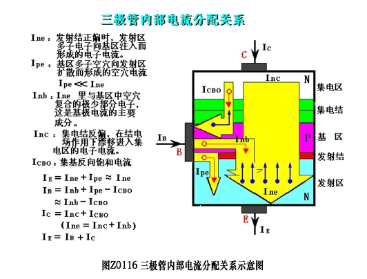 由图Z0116可知,三极管三个电极上的电流组成如下: