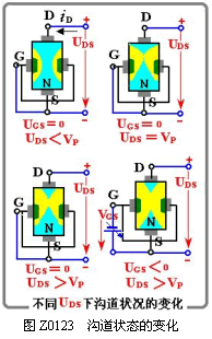 由此可见,结型场效应管的漏极电流ID受UGS和UDS的双重控制。这种电压的控制作用,是场效应管具有放大作用的基础。