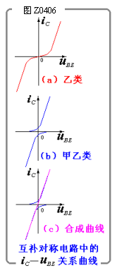 为了避免交越失真,通常在每管的发射结上加上一定的正向偏压,使两管在静态时都处于微导通状态,这样,当有信号时,就可使iC和uBE基本上成线性关系,消除了交越失真,如图Z0406示。此时,电路便工作在甲乙类状态。应当指出,为了提高工作效率,在设置偏压时,应尽可能接近乙类状态。