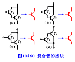 复合管是由两只或两只以上的三极管组成一只等效的三极管。具体接法如图Z0409所示,从中我们可以看到如下规律: